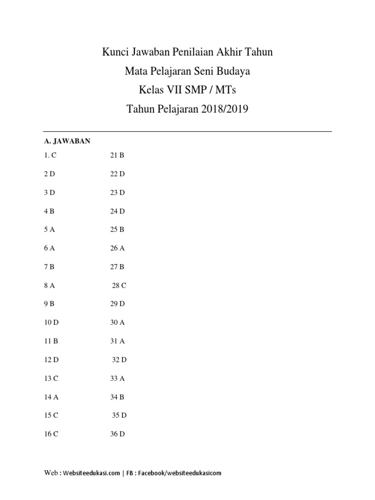 Soal pat seni budaya kelas 7 dan jawabannya ini terdiri dari 45 butir soal, 40 2020 + kunci jawaban. Selengkapnya soal juga terdapat pada subtema 2 pembelajaran 1 dalam tema 7 kelas 4 tentang indahnya keragaman budaya negeriku. Dengan adanya kunci jawaban hal ini tentu dapat mempermudah menemukan referensi media belajar, serta mempermudah dalam pemahaman materi. Kunci jawaban buku tematik (halaman 36). Ajukan pertanyaan tentang tugas sekolahmu.